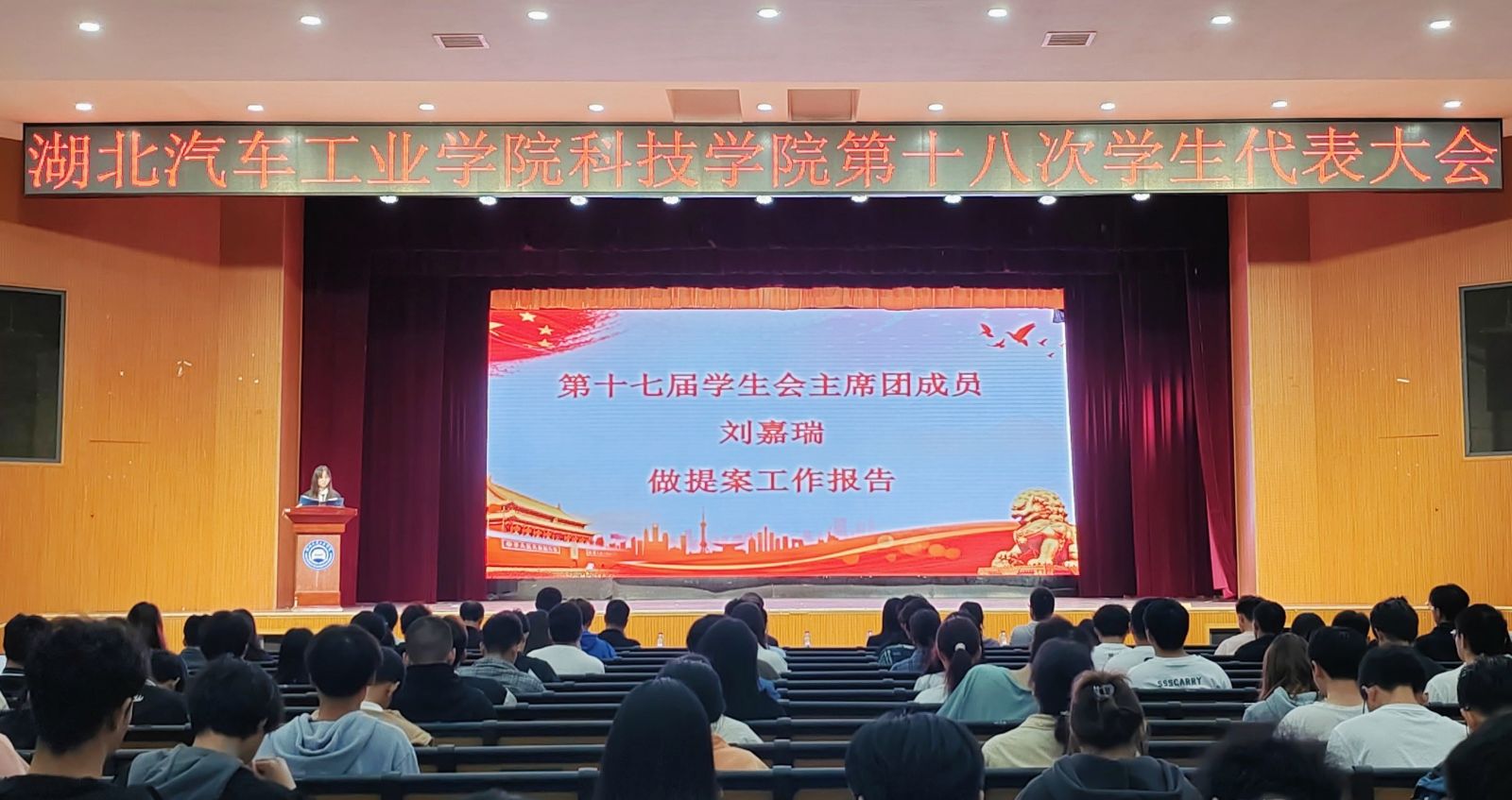 会议伊始,全体起立,奏唱国歌。随后,第十七届员工会主席团成员王紫嫣同学宣读了《学代会会议纪律》,刘嘉瑞同学作《提案工作报告》,蒋聪聪同学作《员工会工作报告》,提案工作报告充分反应了广大同学关注的问题,主要涉及校园环境建设、宿舍配套设施和教室桌椅等;员工会工作报告内容充实,成绩斐然,可圈可点,振奋人心。接着,陈可盈同学宣读了《大会选举办法》,本次会议按照民主、公平、公正、公开的原则,选举产生新一届员工会主席团成员。七位候选人上台作竞选演讲,他们分别介绍了自己的个人特长,获奖荣誉以及今后的工作设想。