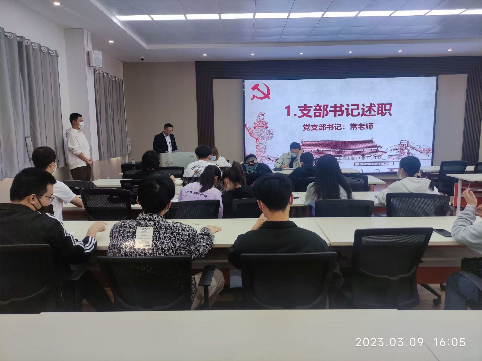 首先,由支部书记常金星进行述职。常金星同志就支部2022年度的整体工作进行了高度总结,对亮点工作提出了表扬和肯定,同时也一针见血的对支部及支部党员中查摆出的问题进行逐一列举,要求全体支部党员对标对表反思自身缺点和不足,并且对2023年度的工作进行统筹安排。