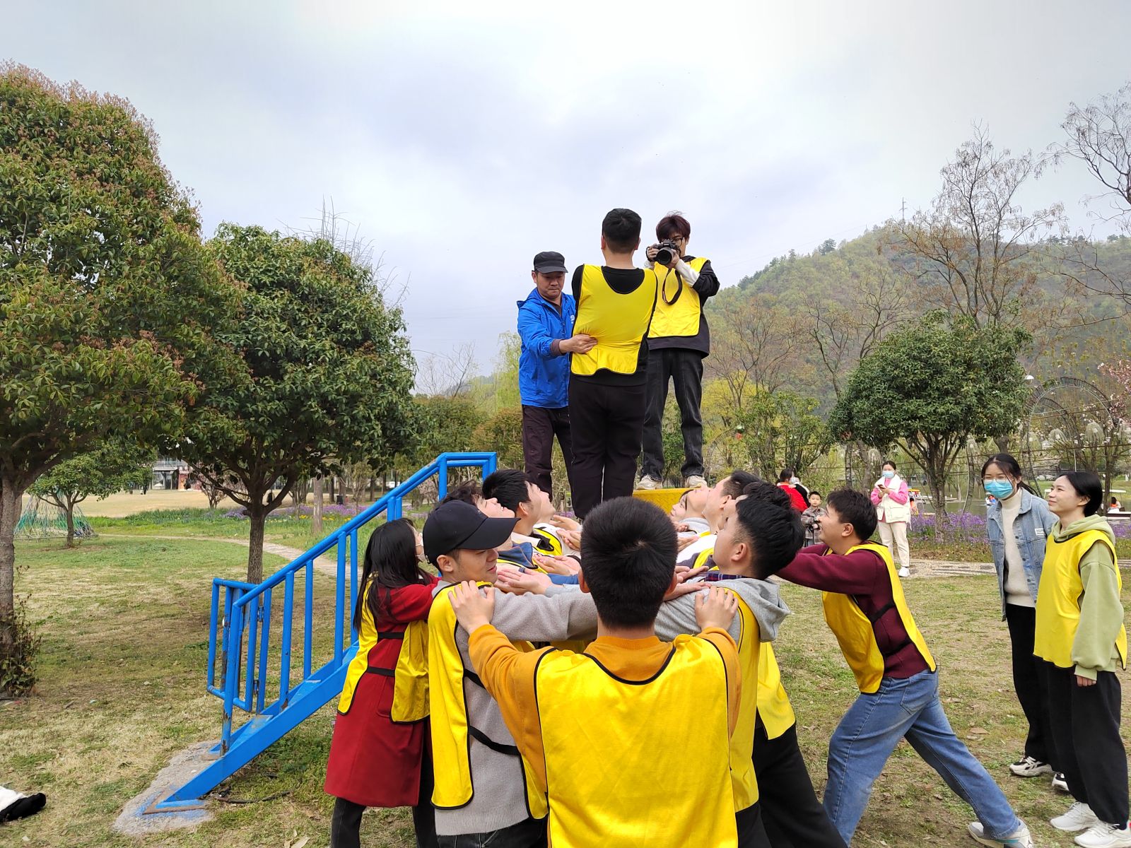 随后,两支队伍共同挑战了信任背摔、攀岩、同心桥、旱地冰壶、极限飞盘等项目。活动中,每队队员全情投入、群策群力、互助互信、积极沟通,克服困难,共同完成了每一个项目,在体验奉献、协作所带来成功喜悦的同时,也更加明白团结的精髓。
