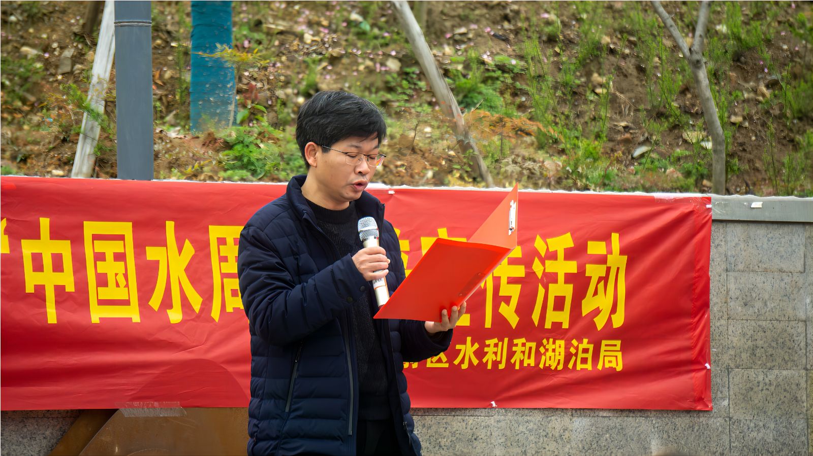 下午三点,活动正式开始。首先由茅箭区二堰街办纪委书记吕刚上台发表讲话,号召广大居民朋友及各个市政机关部门深入贯彻、执行国家的水利政策,落实绿色发展理念,积极投身于新时期的治水兴水事业。随后由区河湖长办向志愿者进行授旗仪式,茅箭区水利和湖泊局局长顾朝东宣布“强化依法治水,携手共护母亲河”志愿活动正式启动。