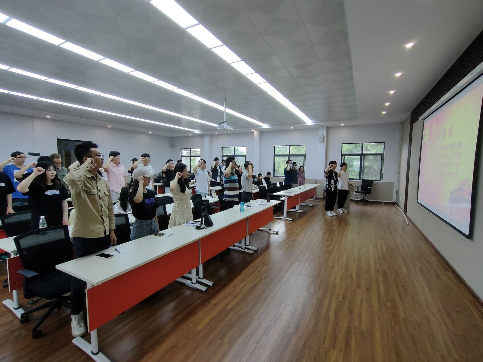 会议第三项,全体党员诵读党章,重温入党誓词。接着,支部书记黄月总结了近期支部开展的西山清扫、趣味运动、党史答题等一系列活动,肯定了各位党员热情度与参与感。同时提出“聚是一团火,散是满天星”的观点,希望员工党员们充分发挥带头作用,也希望毕业生党员能在各自领域发光发热。随后,黄月对后续毕业生党员欢送会等工作进行了安排和部署。