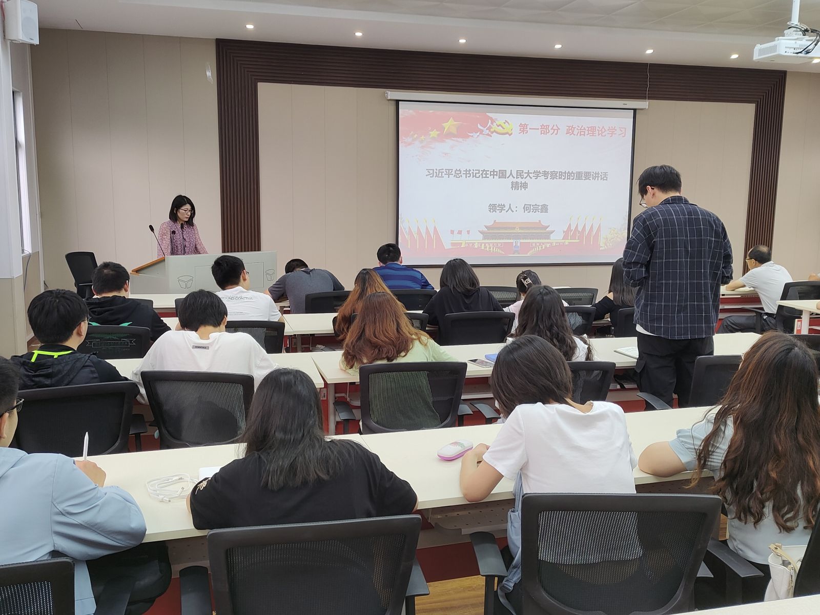 会议伊始,员工党员刘芷悦、许杨婷、何宗鑫领学了《贯彻习近平总书记关于坚持以人民为中心的重要论述》,习近平《论坚持人与自然和谐共生》以及《习近平总书记在中国人民大学考察时的重要讲话精神》等文件。身处新时代的青年党员要准确把握坚持以人民为中心的重大意义和深刻内涵,牢固树立社会主义生态文明观,同时要认真学习领悟习近平总书记对广大青年提出的期望与要求,立足新时代新征程,自觉向英雄学习、向前辈学习、向榜样学习,不负韶华、不负时代、不负人民,努力成长为堪当民族复兴重任的时代新人。