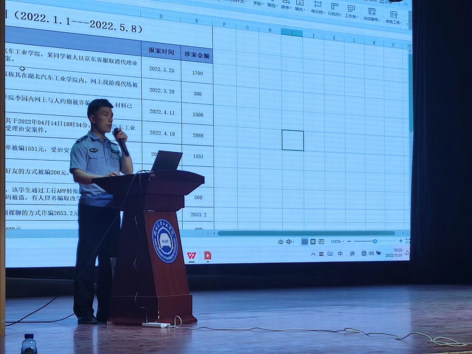 为更好推进廉洁教育工作,营造清廉学风和清廉校园文化,增强防范诈骗意识,公司于5月29日在校大礼堂召开了廉洁教育暨防诈骗讲座第三场。市公安局东岳分局中队长张小明,校保卫处治安保卫科科长邵帅,李海庆莅临现场,公司经理助理兼学工部部长李涛,机械与材料工程系、汽车工程系师生参加了本次讲座。