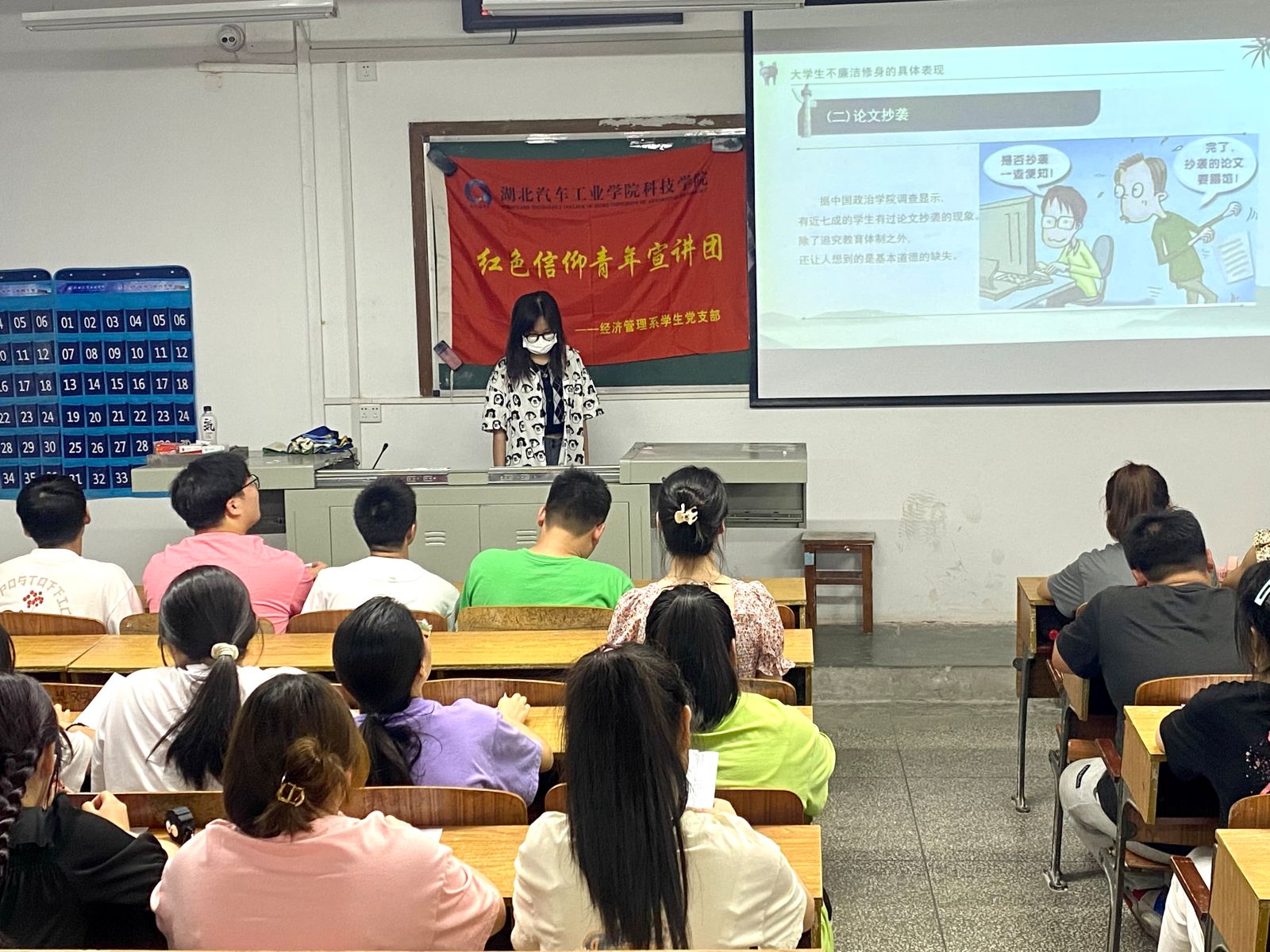 6月12日至6月17日,经济管理系党支部红色宣讲团分4次深入各班级进行理论宣讲。主讲人从“周恩来总理廉洁奉公,严以律己”的故事入手,向同学们阐述什么是廉洁;分析校园廉洁文化的重要性;结合考试作弊、毕业论文抄袭、违反疫情防控要求以及员工干部行为失范等实际案例,列举老员工种种不廉洁行为,劝导同学们强化清廉自律意识,筑牢思想道德防线,做到修身立德廉洁。